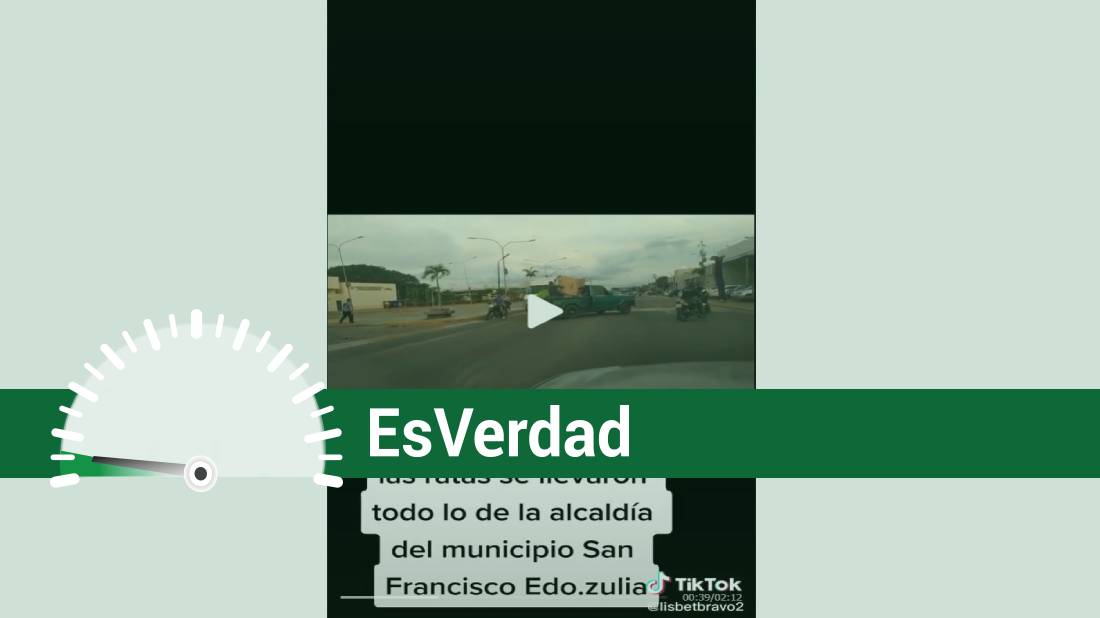 Circula por Whatsapp un video de TikTok, en el que de entrada se lee: "las ratas se llevaron todo lo de la alcaldía del municipio San Francisco edo. Zulia". Y se oye decir a alguien que no se muestra en cámara: "están saqueando, se llevaron todo, aires acondicionados, toda verga, todo lo que pudieron llevarse se lo llevaron. Los camiones salieron por allá atrás", mientras se ven personas corriendo. Luego otra voz dice: "los mismos policías, ve, sacando cajas, cajas con cocinas de la alcaldía. Allá van los policías, ve. Llegaron los equipos antimotín de la policía regional. La alcaldía vacía completamente. Mira, están saqueando por la parte de atrás!".