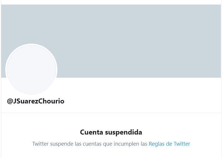¿Por qué fueron suspendidas estas cuentas de Twitter? En la captura de pantalla se indica el motivo: incumplimiento de las reglas de la red social. Estas incluyen: