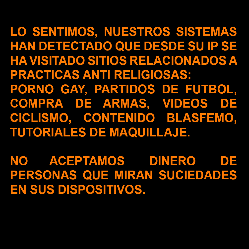 Aunque la presunta web oficial principal de la Iglesia del Final de los Tiempos no está activa —como indicamos antes—, sí hay un portal del presunto fundador del culto religioso, Andrés de la Barra. Cuando el equipo de EsPaja.com intentó "diezmar" o hacer una donación en el sitio electrónico a través del método de pago electrónico Paypal, apareció el siguiente mensaje:
