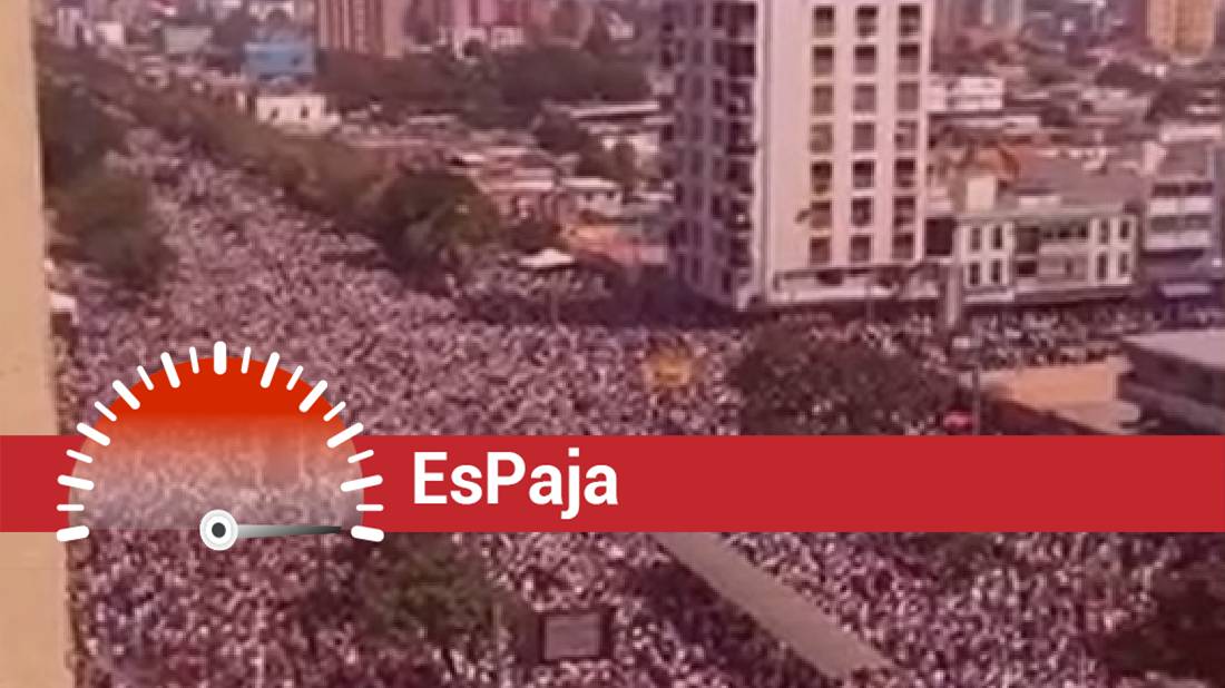 Nos piden verificar si un video que rueda por WhatsApp —muestra una avenida urbana repleta por una multitud— corresponde a las protestas del 23 de enero de 2023 en Caracas. La respuesta es tan meridiana como el nombre de nuestro portal: es paja.